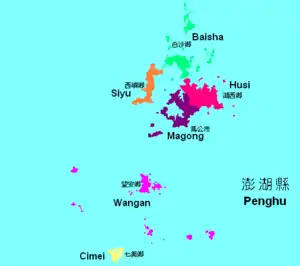 Три основных острова архипелага — Магун, Байша и Сиюй — соединены двумя дамбами и мостом. Эти три острова отгораживают внутреннее море, которое хорошо подходит для занятий виндсерфингом и другими водными видами спорта. На остров Магун приходится половина общей территории архипелага и 70 % его населения.