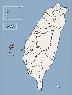 Территорию уезда образует одноимённый архипелаг в Тайваньском проливе к западу от острова Тайвань.