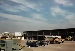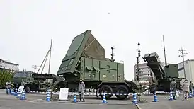 ![]() зенитное ракетное подразделение на позиции на авиабазе Касуга: машина управления, станция наведения ракет с ФАР, пусковая установка с двумя ракетами в контейнерах | |