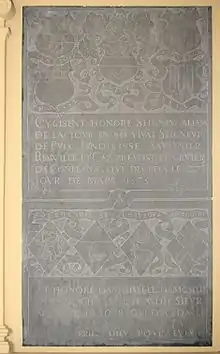Мемориальная доска Адама де ла Тура в церкви Пюкса.