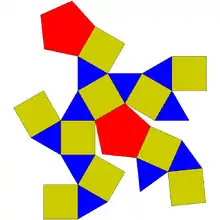 Имеет 40 рёбер одинаковой длины. 10 рёбер располагаются между пятиугольной и квадратной гранями, остальные 30 — между квадратной и треугольной.