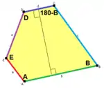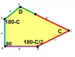 ![]() d = c + e A = 90°, C + D = 180° 2B + C = 360° B + E = 270° | ||