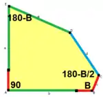 ![]() a = c, d = e A + B = 180°, A + D + E = 360° |