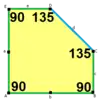 ![]() a=b=c+e A=90, B+E=180°, B+2C=360° | ![]() a=b=2c=2e A=B=E=90°, C=D=135° |