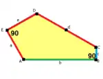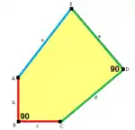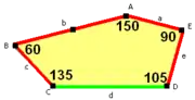 ![]() a=c=e, b=2a, d=√2 + √3a A=150°, B=60°, C=135° D=105°, E=90° |
