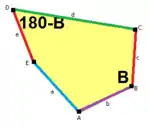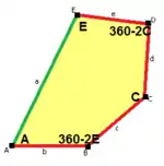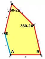 ![]() a = e B + C = 180°, A + D + E = 360° |
