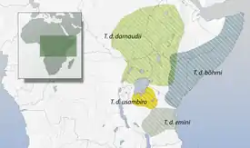 Распространён на востоке африканского континента: в юго-восточном Судане, Эритрее, Эфиопии, Сомали, северо-восточной Уганде, Кении и Танзании. Населяет травянистые и кустарниковые саванны, редколесья, поляны среди зарослей колючих кустарников, пастбища. Нередко встречается на открытых лужайках в сельских населённых пунктах, в том числе заброшенных. Как правило, не поднимается выше 1900 м над уровнем моря, но на юге ареала встречается на высоте до 2100 м над уровнем моря. Побережья достигает лишь на территории Сомали. Отдаёт предпочтение засушливым ландшафтам с участками оголённой почвы, нередко в стороне от водоёмов[8][5].