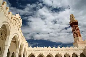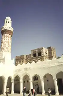 Внутренний двор перед харамом по периметру обнесен стеной. Со стороны бассейна в стене сделано несколько широких окон. Там же находится и вход. По кругу двора идет аркада, образующая внутреннюю галерею двора. С правой стороны располагается еще одна аркада с колоннами, отличными от основной аркады. Верх аркады декорирован зубцами традиционной для Йемена формы.[1]