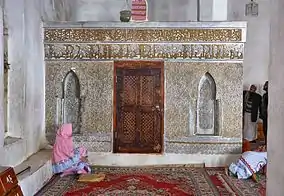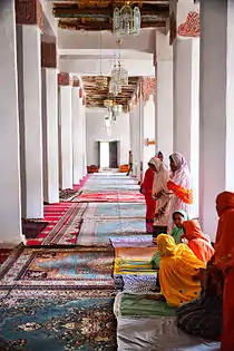 С южной стороны расположена высокая широкая лестница, ведущая на уровень мечети и окружную галерею.[1]