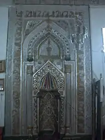 Сама мечеть располагается на значительном возвышении. Это обусловлено гористой местностью города. Поэтому часть комплекса мечети, где находятся минареты выше противоположной. У мечети 4 входа. Один из них до сих пор сохранил оригинальную деревянную дверь. Дверь декорирована изречениями из Корана и замысловатым орнаментом.[1]