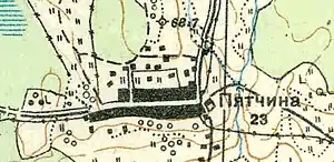 Деревня Пятчина упомянута на карте профессора С. С. Куторги 1852 года[8].