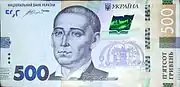На реверсной стороне банкноты размещено изображение здания Староакадемического корпуса Киево-Могилянской академии. На фоне изображена использовавшаяся в XVIII веке печать Киево-Могилянской академии с круговой латинской надписью «ACADEMIA KIIOVIENSIS SIGILLUM» и изображением Староакадемического корпуса в центре. Справа от изображения академии — вертикальная надпись «Києво-Могилянська академія». Слева от изображения академии расположена иллюстрация к произведению «Пифагоровый треугольник» в виде треугольника с глазом, вписанного в окружность, с размещёнными по углам греческими буквами α, β и ω. Также обратная сторона банкноты содержит серию (две буквы) и номер (семь цифр) банкноты; номинал, указанный числом и прописью («П’ятсот гривень»); год и место печати («Київ 2006»); вертикальную надпись «УКРАЇНА».