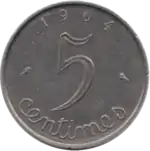В связи с инфляцией необходимость в использовании в обращении монет этого номинала отпала, и 1 января 1941 года 5 сантимов были изъяты из обращения.