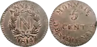 Бронза | 1814 | Имеются разновидности: монограмма «N» или двойная «L» на аверсе, другие отличия деталей аверса, а также веса и размера | |||||