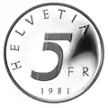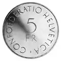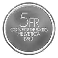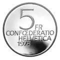 1 апреля 1971 года был принят закон об изъятии из обращения серебряных монет 835-й пробы (образца 1931 года). В тот же день они утратили силу законного платёжного средства, в обращении стали использоваться только монеты в пять франков образца 1968 года из медно-никелевого сплава. Швейцарский национальный банк принимает к обмену серебряные монеты в 5 франков, чеканившиеся в 1931—1967 и 1969 годах, в том числе памятные, без ограничения срока[5].