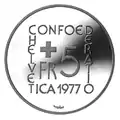 1976 | Битва при Муртене | 31 | 13,2 | Медь—никель 650/350 | UNC — 1 506 000 PROOF — 100 900 | ||
