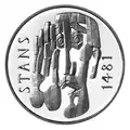 1986 | Битва при Земпахе | 31 | 13,2 | Медь—никель 750/250 | UNC — 1 082 000 PROOF — 75 800 | ||