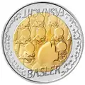 2000 | Карнавал в Базеле | 33 | 15 | Медь—алюминий—цинк—олово 890/50/50/10 (центр) Медь—никель 750/250 (кольцо) |