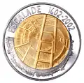 2002 | Женевская эскалада | 33 | 15 | Медь—алюминий—цинк—олово 890/50/50/10 (центр) Медь—никель 750/250 (кольцо) |