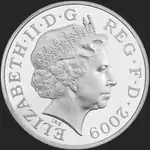 - Аверс: Стандартный портрет Елизаветы II, авторства Иэна Ранг-Брэдли. Надпись: ELIZABETH II DG REG FD 2000.