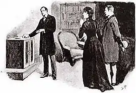![]() Шерлок Холмс, Эллен Стоунер и доктор Уотсон. Иллюстрация Сидни Пэджета | |