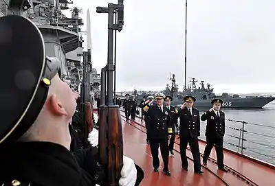 - ВМФ России: ТАРК «Петр Великий» отмечает 16-летие со дня подъёма Военно-морского флага (недоступная ссылка). Информационное агентство «Оружие России» (18 апреля 2014). Дата обращения: 18 апреля 2014. Архивировано 21 апреля 2014 года.