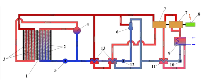 Реактор РБМКП-2400 работает по одноконтурной схеме. Циркуляционный контур разделён на две самостоятельные петли — испарительную и перегревательную. Испарительная петля представляет собой контрур многократной принудительной циркуляции (КМПЦ), перегревательная — разомкнутый контур пароперегрева. В испарительной петле теплоноситель (вода) поступает в испарительные каналы активной зоны, охлаждая ТВС, частично испаряется и образующаяся пароводяная смесь поступает в вертикальные барабаны-сепараторы. В них происходит сепарация пара. Остающаяся вода из сепараторов, смешиваясь с питательной водой с помощью главных циркуляционных насосов, снова подаётся в испарительные каналы. Отсепарированный насыщенный пар поступает в перегревательные каналы активной зоны, где происходит соответственно его перегрев. Пройдя через перегревательные каналы, перегретый пар (температура ~450 °C) под давлением 70-65 кгс/см2 поступает на два турбогенератора электрической мощностью по 1200 МВт каждый. Отработанный пар конденсируется, после чего, пройдя через регенеративные подогреватели и деаэратор, подается с помощью питательных насосов (ПЭН) в испарительный контур.