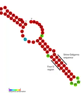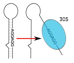 В качестве примера можно рассмотреть РНК-термометр FourU Salmonella enterica[3]. Под действием температур выше 45 °C шпилька, содержащая последовательность Шайна — Дальгарно, плавится, последовательность Шайна—Дальгарно становится неспаренной и трансляция мРНК становится возможной[25]. Показано, что на стабильность FourU влияет концентрация Mg2+[27]. Наиболее изучен РНК-термометр, расположенный в мРНК гена rpoH у E. coli[28]. Этот термосенсор положительно регулирует трансляцию белков теплового шока при высоких температурах посредством специализированного сигма-фактора σ32[10].