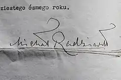 Князь Михаил Радзивилл «Рудый» (8 февраля 1870, Берлин — 6 октября 1955, Санта-Крус-де-Тенерифе) — польский аристократ, последний (4-й) ординат Пшигодзицкий (с 1926).