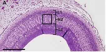 По мере эволюционного усложнения структуры мозга, искривления его поверхности, появления извилин и борозд, усиливается роль радиальной глии и радиальной миграции в правильном построении коры: у приматов несколько поколений нейронов биполярной формы передвигаются вдоль её волокон на значительные расстояния, следуя изгибам, в то время как в гладком мозге грызунов путь миграции более прям и короток. У мышей около четверти нейронов коры мигрируют не-радиально, а у человека — менее 10 %[18].