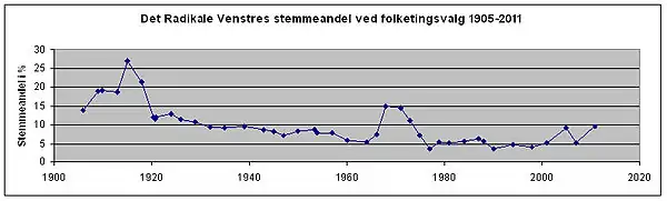 По итогом последних парламентских выборов, состоявшихся в 2019 году, Радикальная Венстре набрала 8,6 % голосов, получив 16 мест в Фолькетинге. На прошлых выборах, в 2015 году, партия получила 4,6% голосов и 8 мест в Фолькетинге.