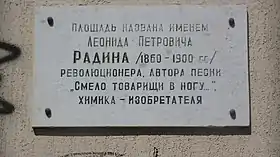 Леони́д Петро́вич Ра́дин (9 [21] августа 1860, Раненбург — 16 [29] марта 1900, Ялта) — русский революционер, поэт, изобретатель. Автор музыки и стихов песни «Смело, товарищи, в ногу!» (1896, Таганская тюрьма).