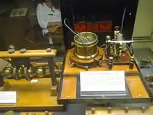 - 2 июля 1897 — Маркони получает британский патент № 12039 «Усовершенствования в передаче электрических импульсов и сигналов в передающем аппарате». В общих чертах приёмник Маркони воспроизводил приёмник Попова, (с некоторыми усовершенствованиями)[23], а его передатчик — вибратор Герца с усовершенствованиями Риги. Принципиально новым было то, что приёмник был изначально подключён к телеграфному аппарату, а передатчик соединён с ключом Морзе, что и сделало возможным радиотелеграфическую связь. Маркони использовал антенны одной длины для приёмника и передатчика, что позволило резко повысить мощность передатчика; кроме того детектор Маркони был гораздо чувствительнее детектора Попова, что признавал и сам Попов.[28]