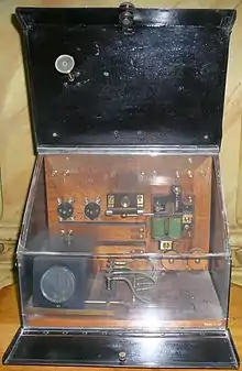 - Конец 1898 — Эжен Дюкретэ (Париж) приступает к мелкосерийному выпуску приёмников системы Попова[32]. Согласно мемуарам Дюкретэ, чертежи устройств он получил от А. С. Попова благодаря интенсивной переписке.