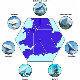 Потери в высокочастотном кабеле и связанное с ним ослабление сигналов ограничивают базы радиоинтерферометра, особенно на высоких частотах. Поэтому принятые сигналы сначала усиливаются, преобразовываются до низких частот и лишь после этого передаются по кабелю либо с помощью ретранслятора, аналогичного телевизионному. При этом, чтобы не потерять когерентности сигналов и контролировать электрическую длину путей их распространения, передаются вспомогательные сигналы. Длина базы таких радиоинтерферометров может составлять десятки км, а угловое разрешение — десятые доли секунды дуги. Однако дальнейшее увеличение базы сопряжено с трудностями передачи сигналов без потери когерентности, сложностью контроля электрических длин каналов передачи сигналов и компенсации больших запаздываний сигналов.[2]