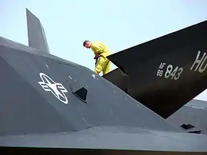 - штурмовик А-10 в конструкции самолёта применяются радиопоглощающие материалы. Они занимают 20 процентов площади крыла (вероятно нижняя поверхность в местах сопряжения с фюзеляжем).