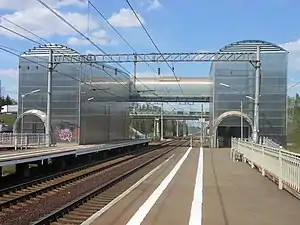 Состоит из двух боковых пассажирских платформ, соединённых надземным пешеходным переходом. Платформы слегка сдвинуты друг относительно друга. Не оборудована турникетами. Имеется билетная касса. К северу от станции железнодорожные пути пересекает по путепроводу Малое Московское кольцо.