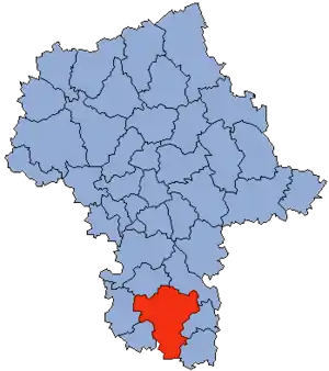 - сельские гмины: Гмина Гузд, Гмина Ястшембя, Гмина Едлиньск, Гмина Едльня-Летниско, Гмина Коваля, Гмина Пёнки, Гмина Пшитык, Гмина Вежбица, Гмина Волянув, Гмина Закшев