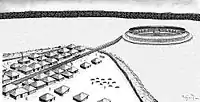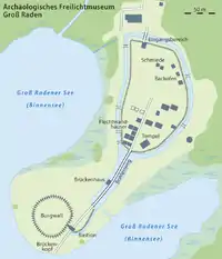 Комплекс состоит из города диаметром около 75 метров и укреплении вблизи города. В укреплении находилось четырёхугольное славянское святилище, размерами 7 × 11 метров с двойными стенами.