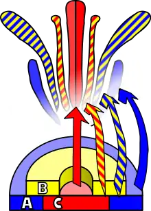 Так называемая АВС модель развития цветка - это современная парадигма биологии развития. Согласно этой модели дифференциация органов цветка определяется работой 3 классов регулирующих генов: гены класса А отвечают за развитие чашелистиков, в сумме с генами класса В они определяют формирование лепестков, совместная работа генов класса В и С ведет к развитию тычинок, а гены С сами по себе контролируют появление пестика в центре цветка. Эти гены кодируют факторы транскрипции, которые вызывают специализацию тканей растения в процессе развития.