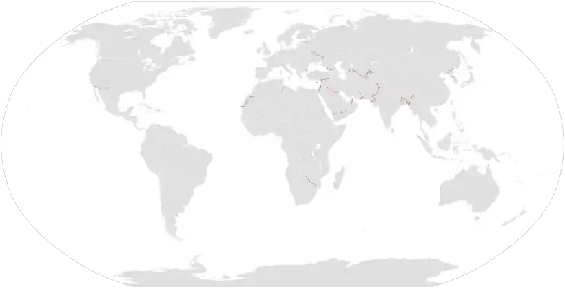 - Индийская стена, разделяющая Кашмир, протянулось на 550 км. Индийская сторона возвела ограждения вдоль 740-километровой линии с Пакистаном, сдвинув ограждения на территорию Пакистана примерно на 137 м. Индия заявляет, что заграждения возведены исключительно с целью препятствовать проникновению террористов и провозу оружия на территорию штата[5].