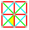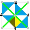 - симметрия cmm; при раскраске в четыре цвета элементарная ячейка состоит из 8 треугольников, фундаментальная область состоит из 2 треугольников (1/2 для каждого цвета)