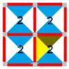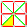 - симметрия p4m; все треугольники имеют один цвет (белый) и чёрные рёбра, элементарная ячейка состоит из 2 треугольников, фундаментальная область (1/2)