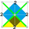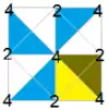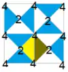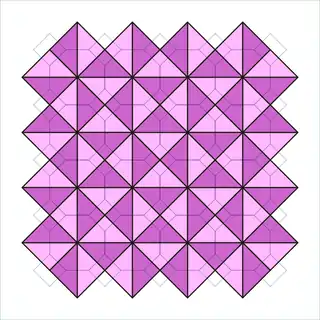 - симметрия p4g; тёмные и светлые треугольники, элементарная ячейка имеет 8 треугольников, фундаментальная область состоит из 1 треугольника (1/2 для каждого чёрного и белого)