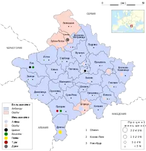 Население трёх южных общин Сербии неоднородно. В Прешеве албанцы составляют более 90 %, в Буяноваце албанцев 55 %, а сербов — 34 %, в Медведжи две трети жителей — сербы, албанцев — лишь 26 %[23].