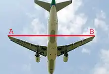 Расстояние от А до В означает размах крыла этого аэробуса Aer Lingus Airbus A320.