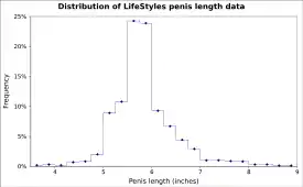 Длина при самоизмерении. В нескольких научных исследованиях выясняли длину полового члена в состоянии эрекции. Исследования, которые основывались на самоизмерении, включая исследования по результатам опросов в интернете, устойчиво показывали бóльшую среднюю длину, чем та, которая получена при использовании медицинских и научных методов[3].
