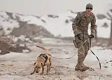 Для разминирования также применяются специально обученные служебные собаки. Во время Великой Отечественной войны с помощью собак советскими военными было обнаружено более 4 млн мин. Во время Афганской войны собаками было обнаружено свыше 7 тыс. мин и других взрывоопасных предметов. Собаки также использовались для разминирования во время Первой чеченской войны и Второй чеченской войны.