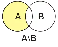Пусть и — два указанных в определении множества, тогда их разность определяется (на теоретико-множественном языке):