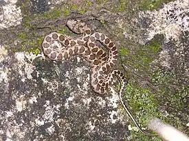 Встречается на высоте до 1300 метров над уровнем моря на каменистых склонах, скалах, поросших кустарником, в зарослях вдоль берегов рек. Прячется в пустотах и трещинах в почве, под камнями, в скалах и лессовых обрывах, норах грызунов, береговых ласточек и черепах.
